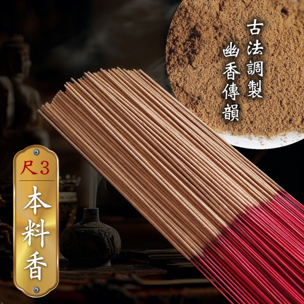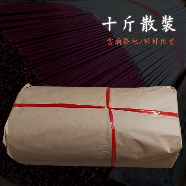 主要成份:特選中藥材、香粉、粘粉、香棒 長 度:尺3約39.5公分 香身直徑:尺3約3.2 ±0.2mm 燃燒時間:尺3約60分鐘 (燃燒時間會受風力及溼度影響) 重 量:10斤裝 -- 適合寺廟供香、宮廟慶典、祭祀活動上使用 香味持久清香,品質保證 天然無毒健康,檢驗合格安心使用 ※不提供分裝服務